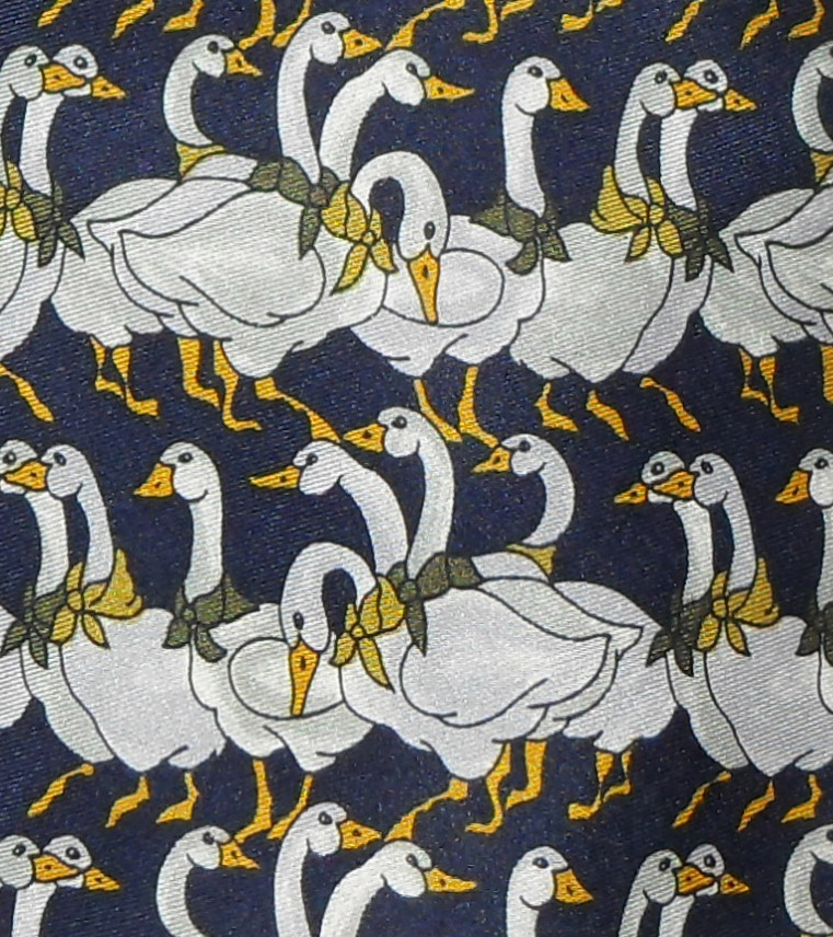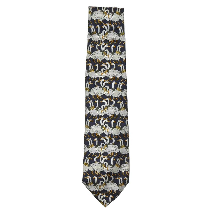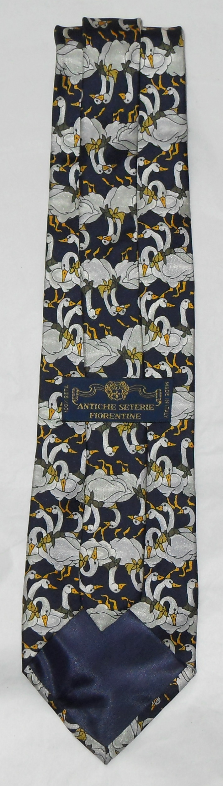 Antiche Seterie silk tie with a design of geese on a dark blue background