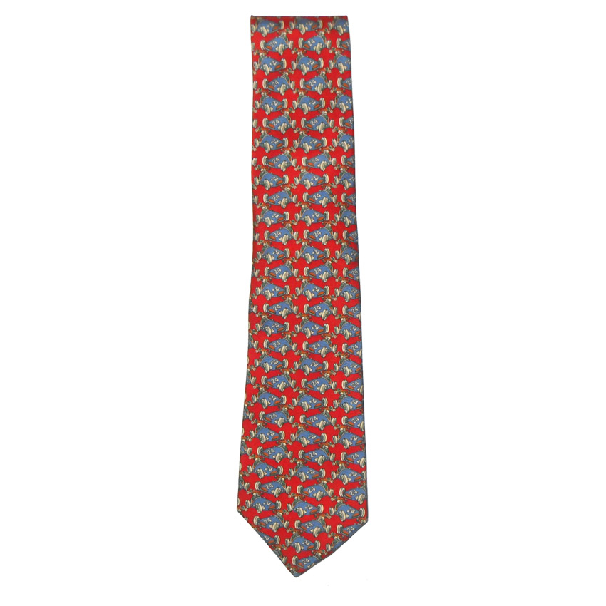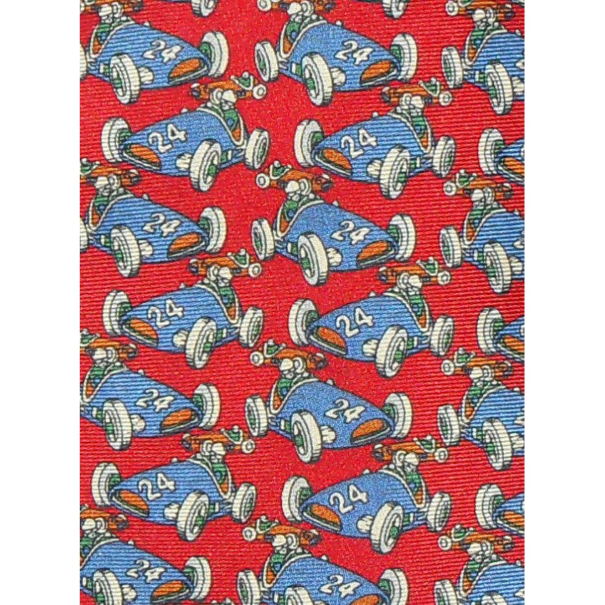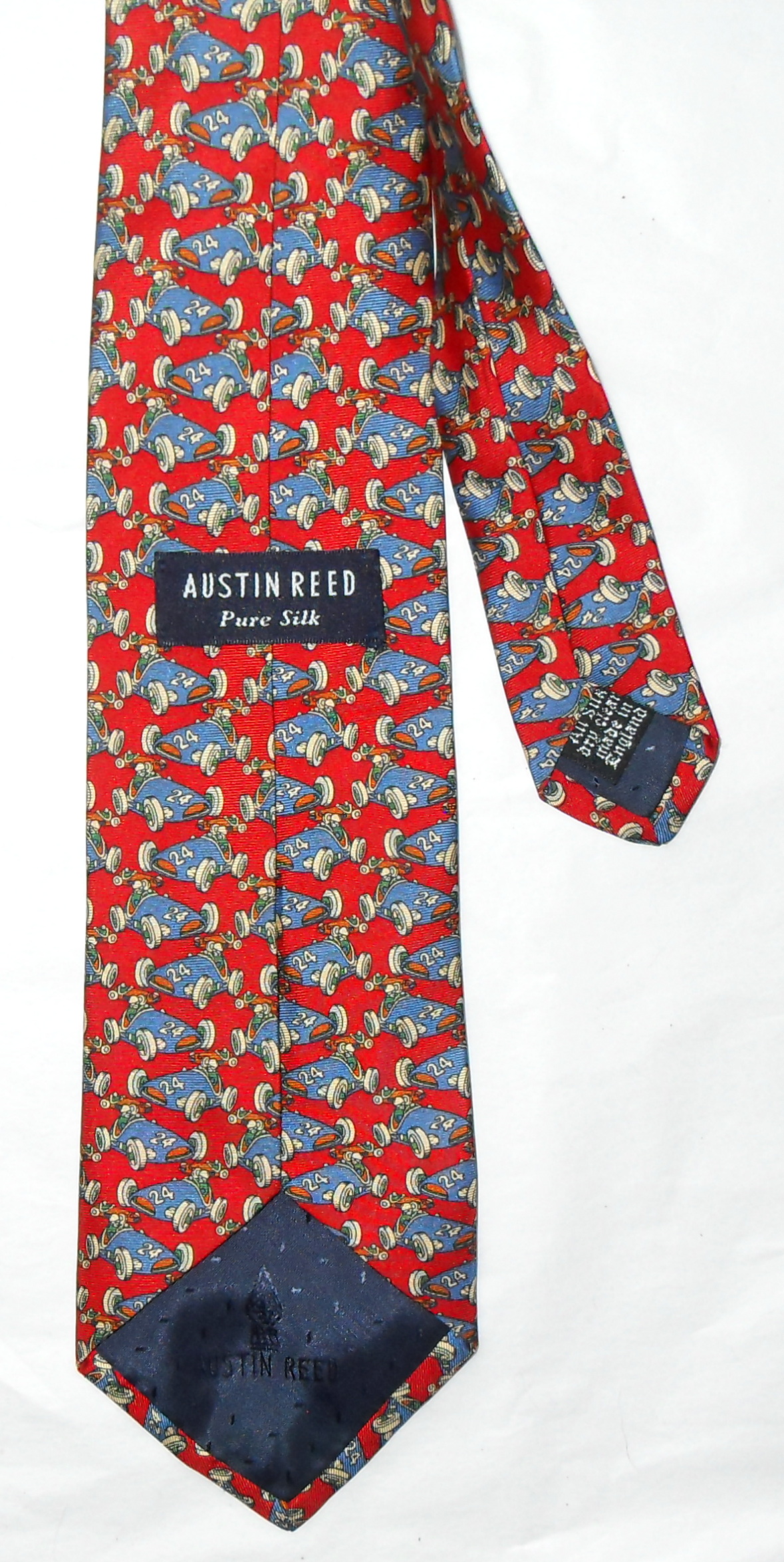 Austin Reed silk tie with a red background and a racing driver and car design.  Made in England