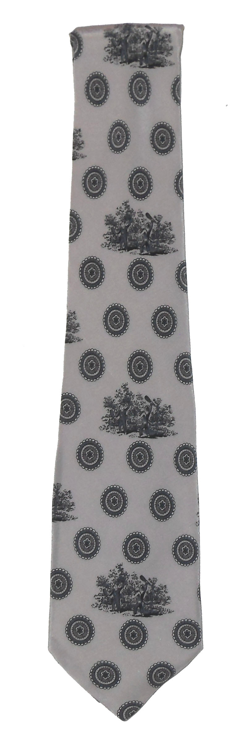 Bielle made in Italy grey silk tie with a design of men with clubs.