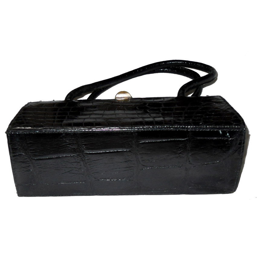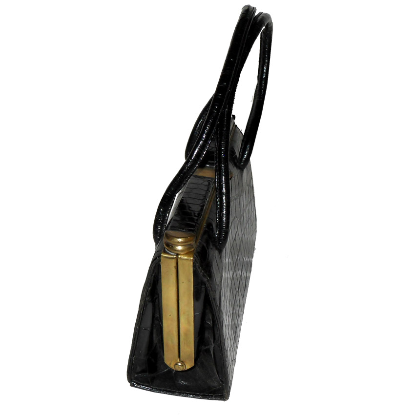 Vintage black croc framed handbag