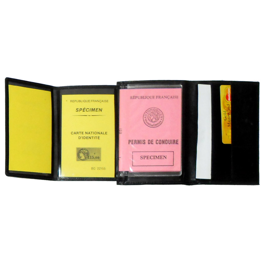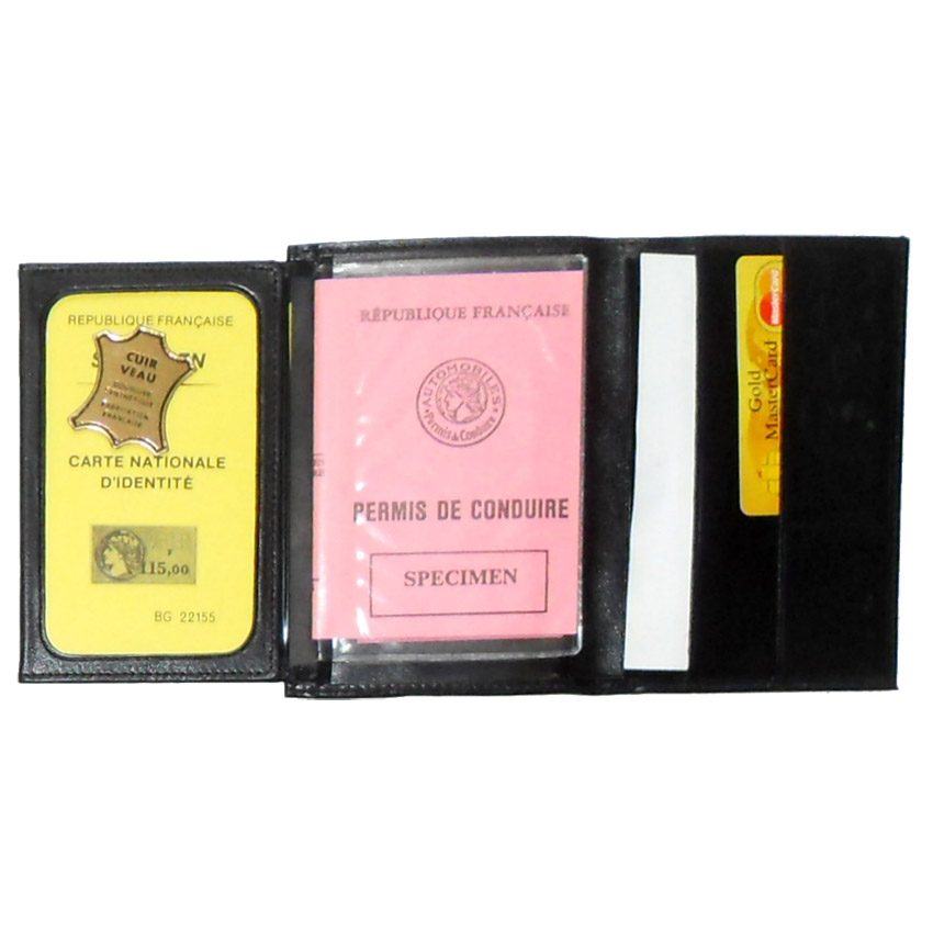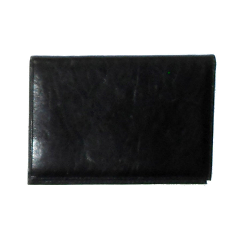 Black leather trifold wallet, made in France. Measures s 6″ (15cm) x 4″ (10cm) when closed.