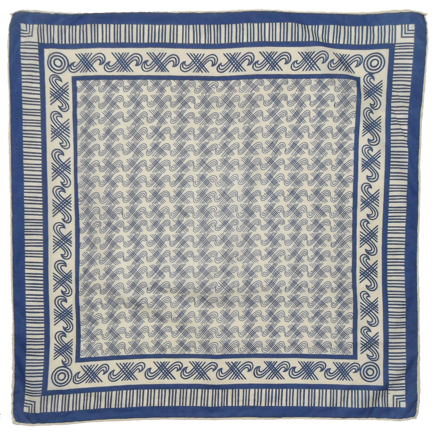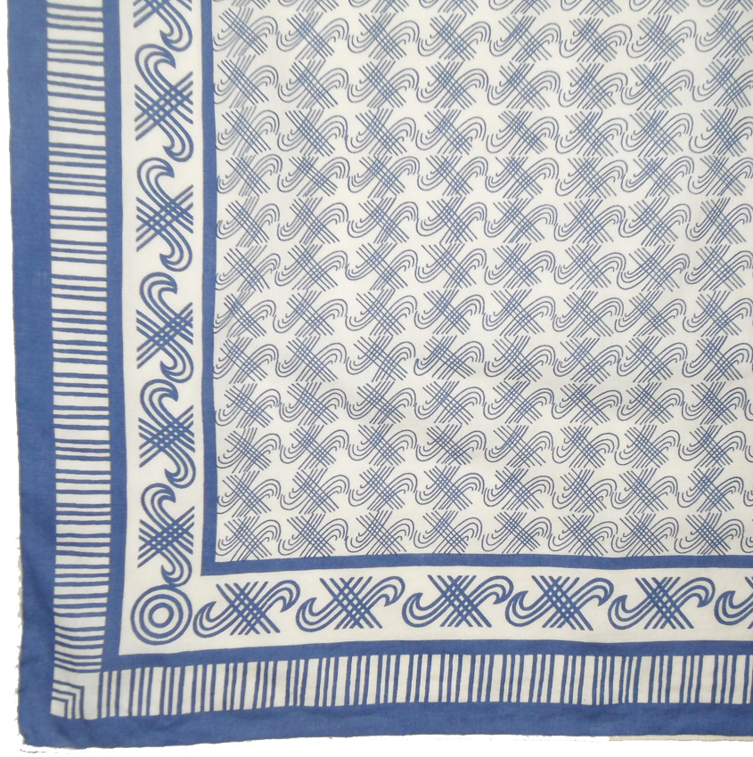 Blue and cream design cotton square with hand rolled edges. Measures 20″ (50cm) x 20″ (50cm).