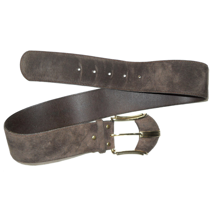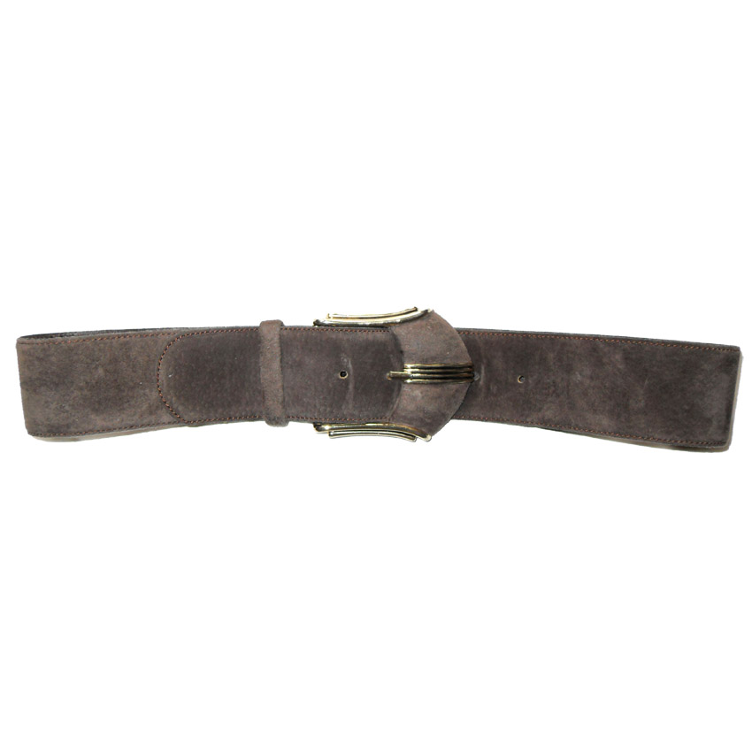 Brown suede belt with gold tone buckle