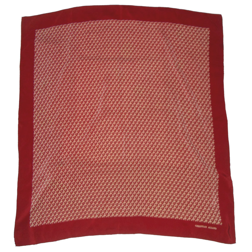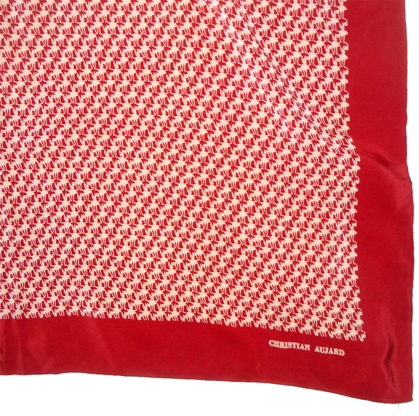 Christian Aujard silk scarf with hand rolled edges and the designer’s name in the corner.  Measures 32″ 81cm) x 34″ (87cm).  There is a pin hole in one corner.