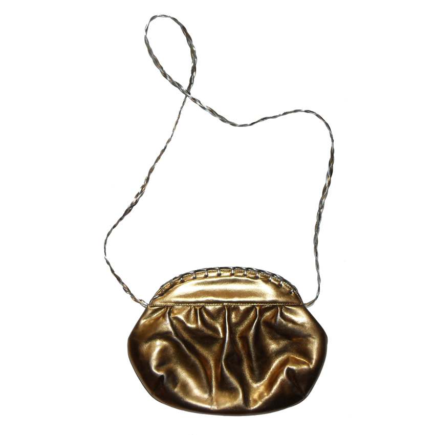 Vintage Cul de Sac Italy dark gold metallic leather handbag lined in brown leather with a plaited leather shoulder strap which can be tucked into the bag for use as a clutch. Inside there is one zip pocket and one further pocket. Measures 10.5″ (27cm) x 8″ (21cm) without shoulder strap.