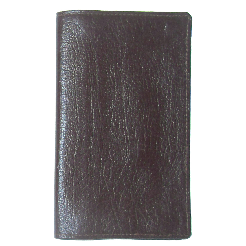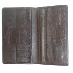 Dark brown grained leather wallet which measures 6.5″ (17cm) x 4″ (11cm) when closed.