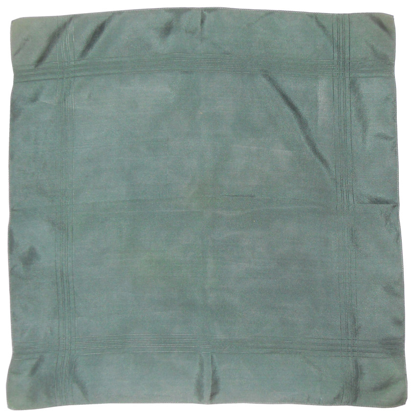 Dark green silk square which measures 17.5″ (44cm) x 17.5″ (44cm).