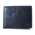 Dents top grain black leather bifold wallet with two pockets for notes and pockets for cards. Measures 4.5″(11cm) x 3.5″ (8.5cm) when closed.