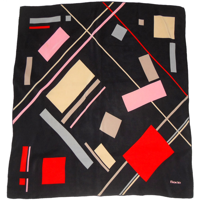 Fiorio Italy colour block design on a black background silk scarf