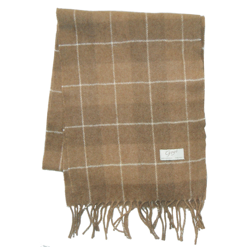 Goyo, Mongolia, camel wool scarf which measures 58″ (147cm) without the fringed ends x 11″ (28cm).