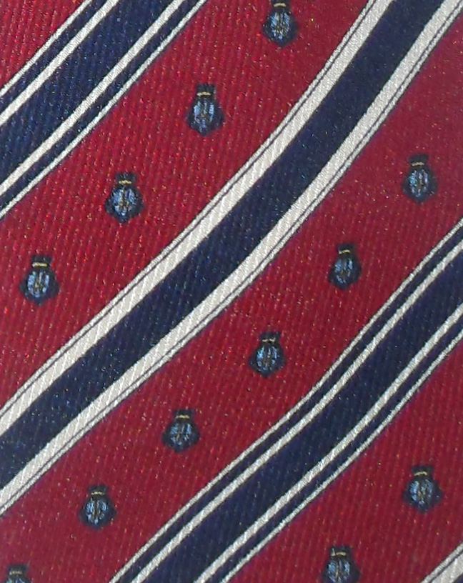 Harrods classic design vintage silk tie with navy and cream diagonal stripes alternated with burgundy stripes with a navy and blue pattern.