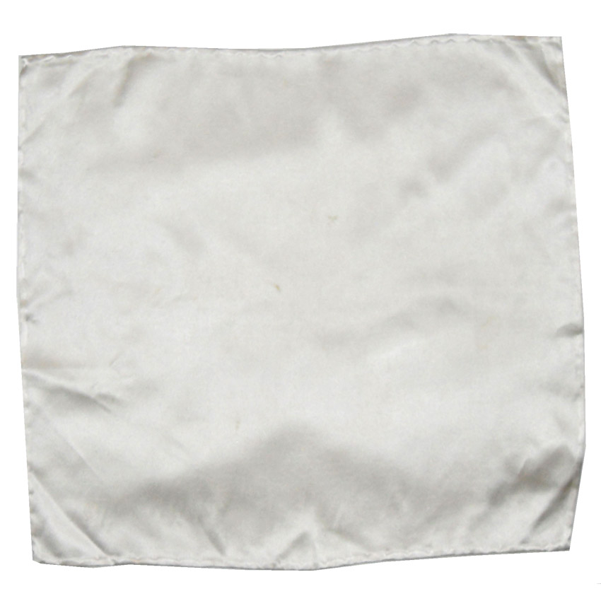 Hand rolled edge ivory satin pocket square which measures 12.75″ (32cm)_ x 12″ (30cm).