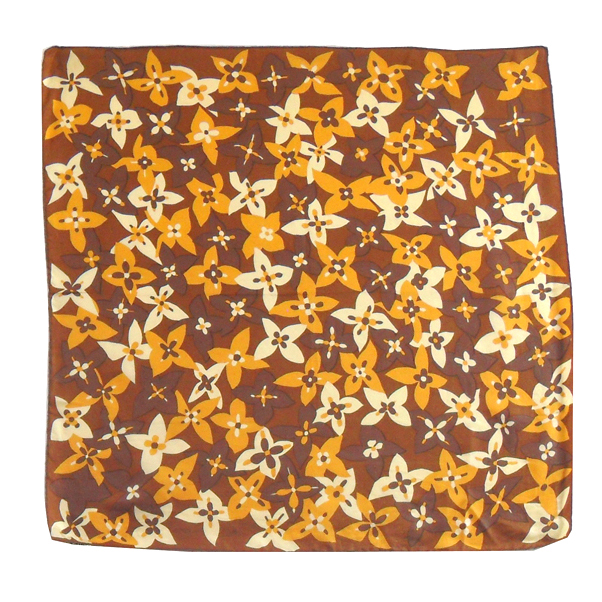 This unusual English scarf has a fun flower design in neutral but bright tones.