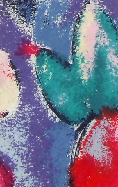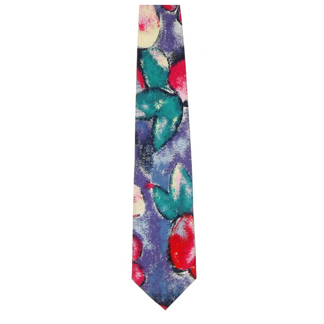 100% cotton tie with a bright design in mauve, pink and green. Good condition.