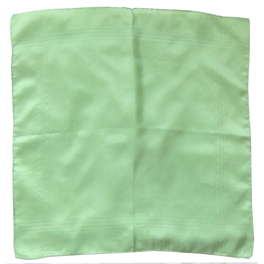 Hand rolled edge light green silk pocket square which measures 17″ (43cm) x 17″ (43cm).