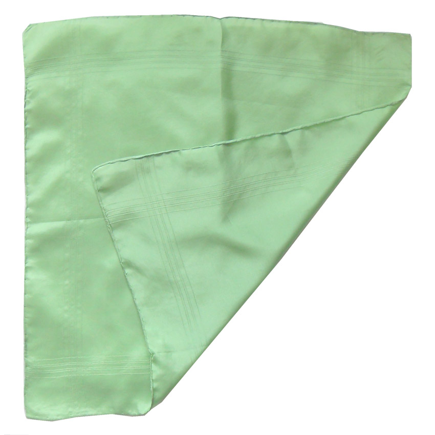Hand rolled edge light green silk pocket square which measures 17″ (43cm) x 17″ (43cm).