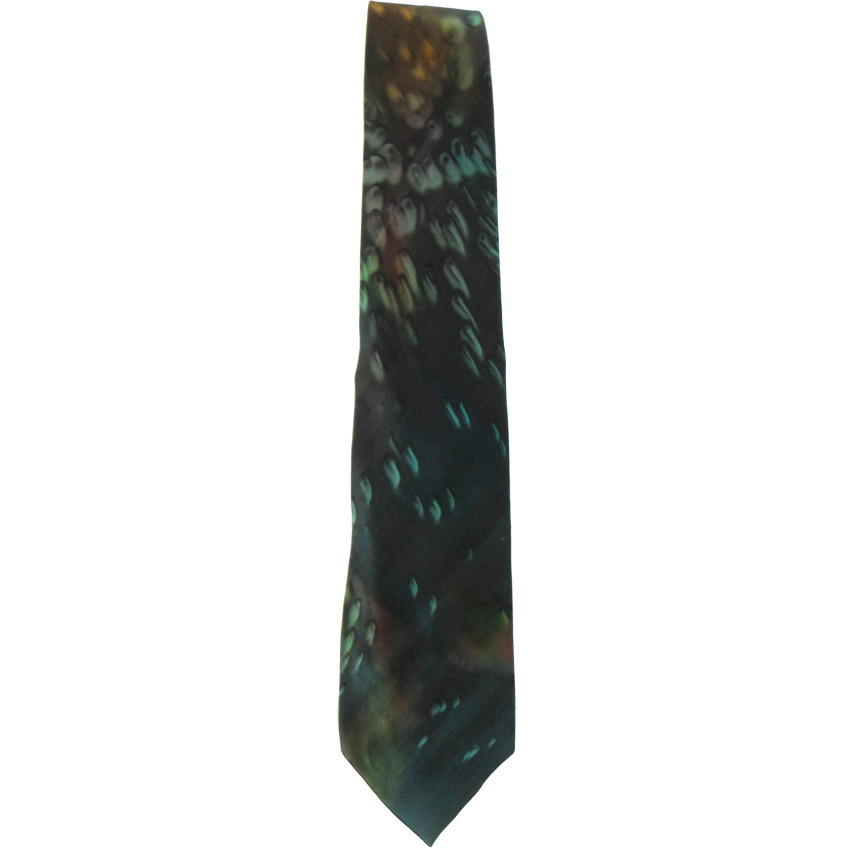 Dark green silk Moschino cravatte tie with an abstract design.
