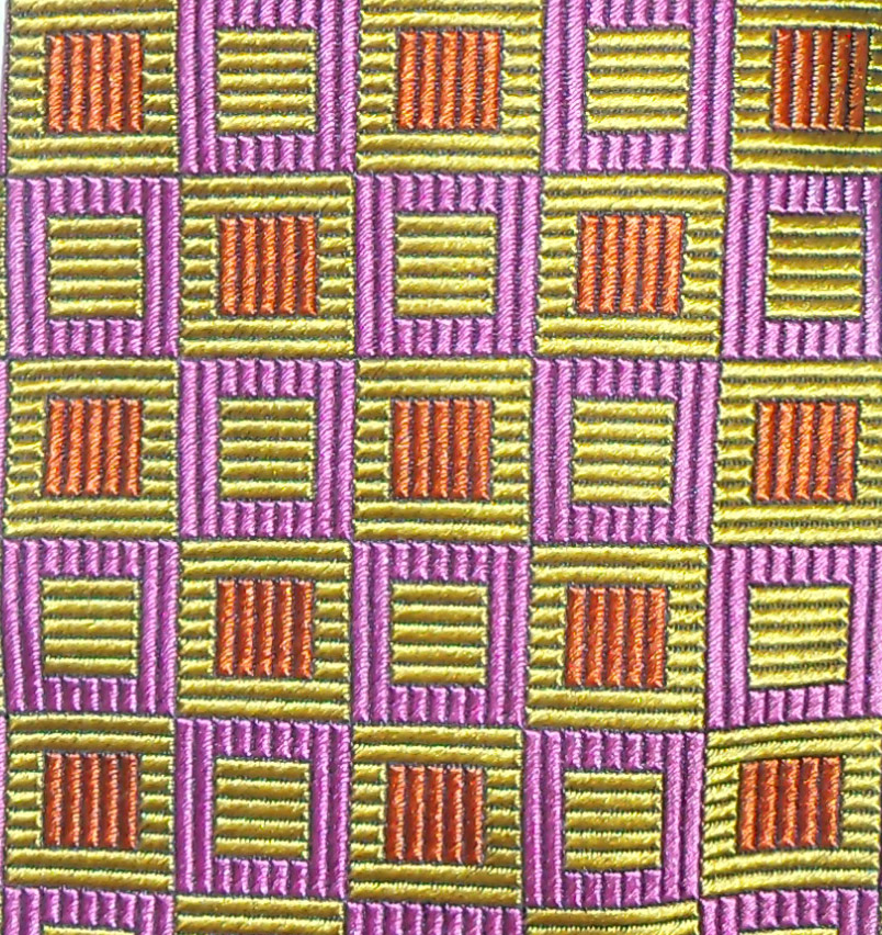 Ozwald Boaten. made in England, pink, orange and gold textured silk tie