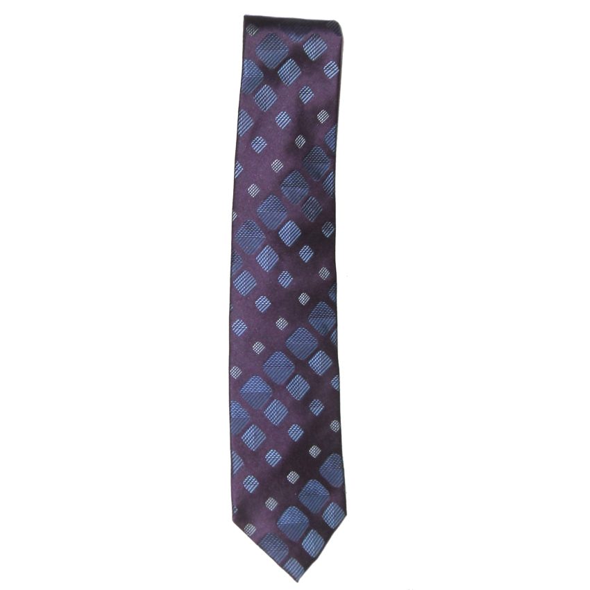 Balmain silk tie with a purple background and a diamond shape design in blue.