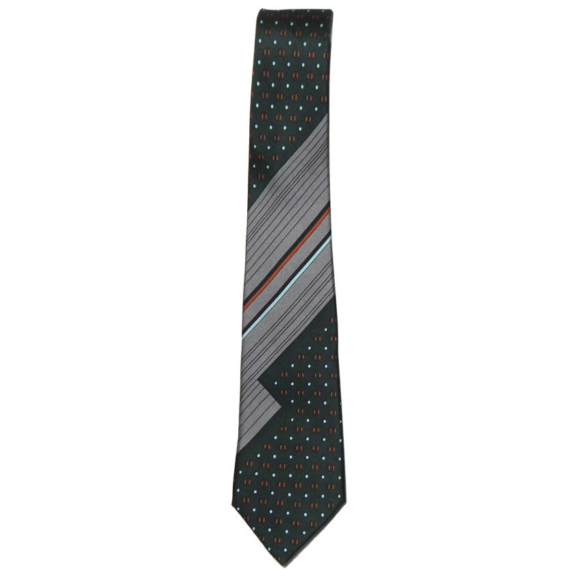 Pierre Cardin vintage silk tie with a dark green and silver grey design with orange and light blue detail.