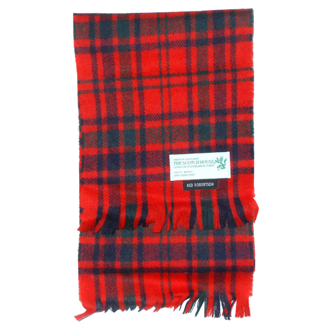 The Scotch House Red Robertson 100% wool scarf. Measures 48″ (122cm) x 8″ (20cm).