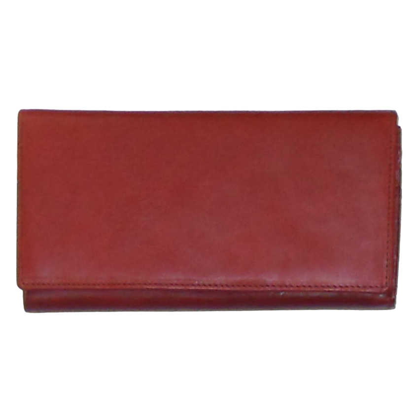 Ted Lapidus 1980s red leather purse which opens to reveal a number of long pockets, card pockets, a pocket for notes and a zip pocket. At the back there is a further zip pocket. The Ted Lapidus name is repeated on the fabric lining. Measures 7.25″ (18cm) x 3.75″ (9.5cm). Unused condition.