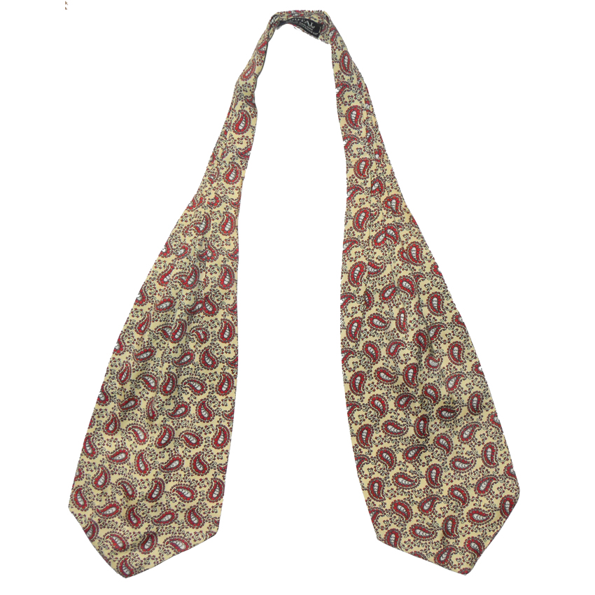 Vintage Tootal rayon cravat with red paisley design on yellow background