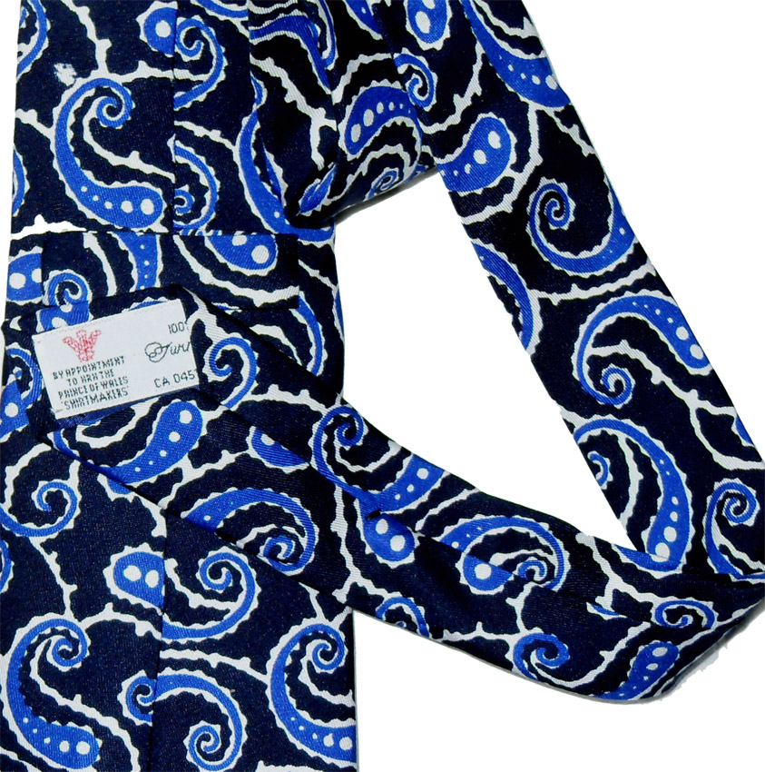 Turnbull and Asser blue and white paisley design silk tie, hand made in England