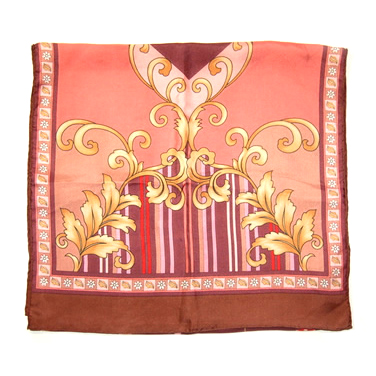 This elegant Turkish scarf by Vakko has a luxurious pink, brown and gold design. Measures 60” (160cm) x 16.5” (42cm).