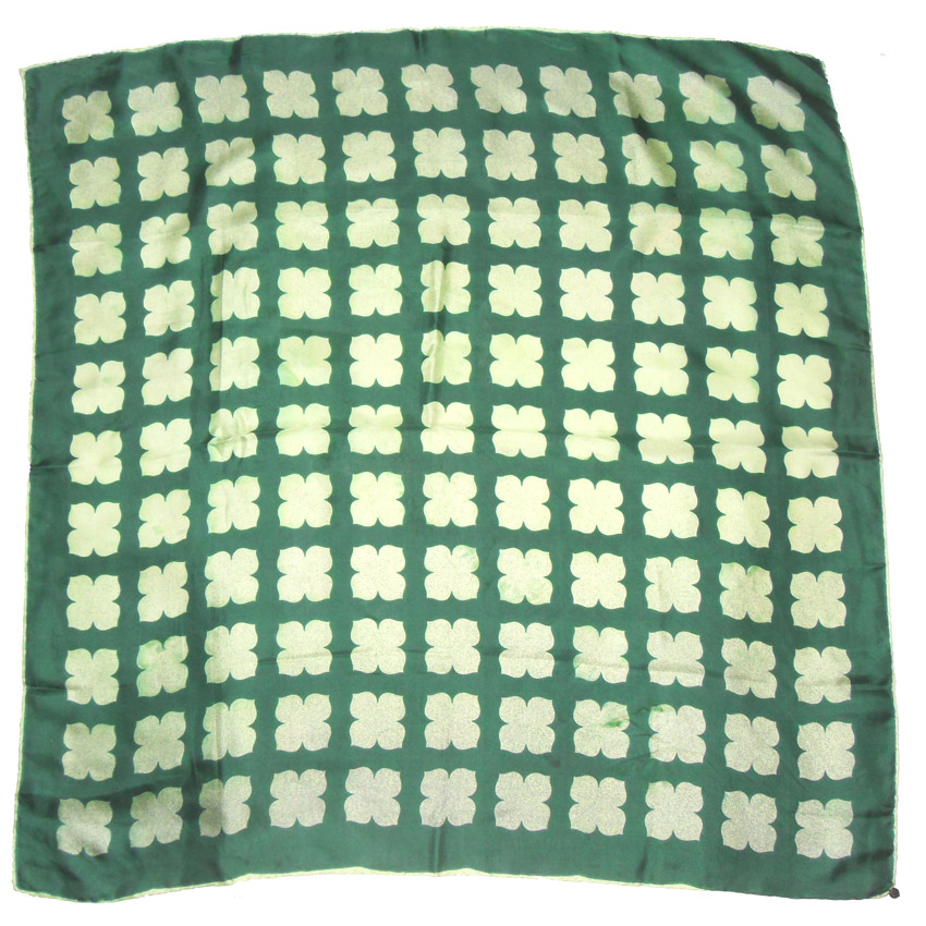 Vintage silk scarf with a dark green background and a light green desgin