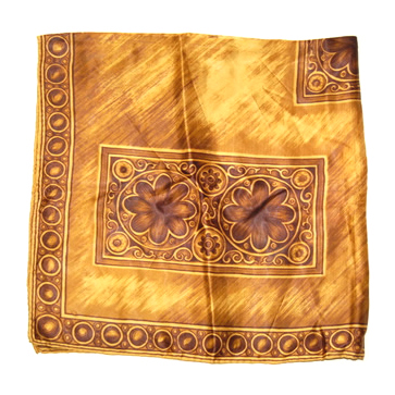 Vintage hand rolled rayon water repellent brown and gold scarf 31″ x 31 (79cm x 79cm).
